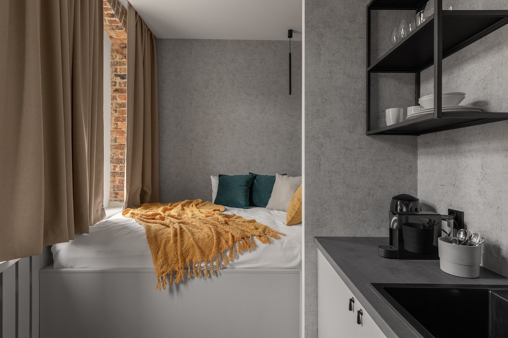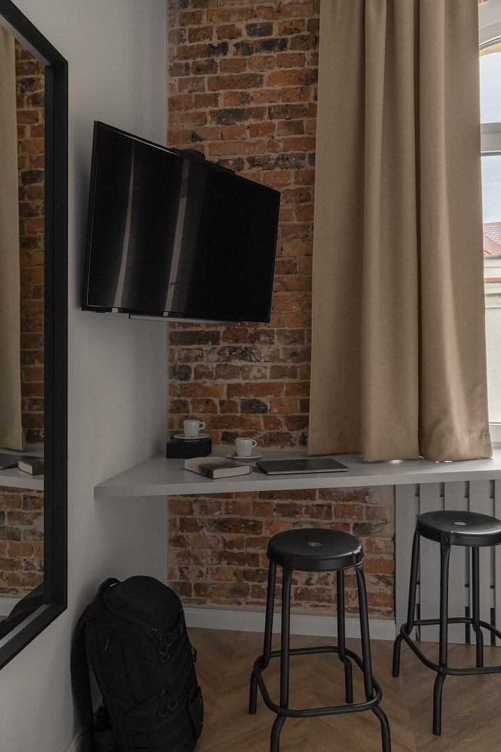 Prawdziwie ceglane ściany we wnętrzach odrestaurowanej kamienicy robią niesamowite wrażenie. Loftowy charakter w którym dosłownie możesz dotknąć historii.